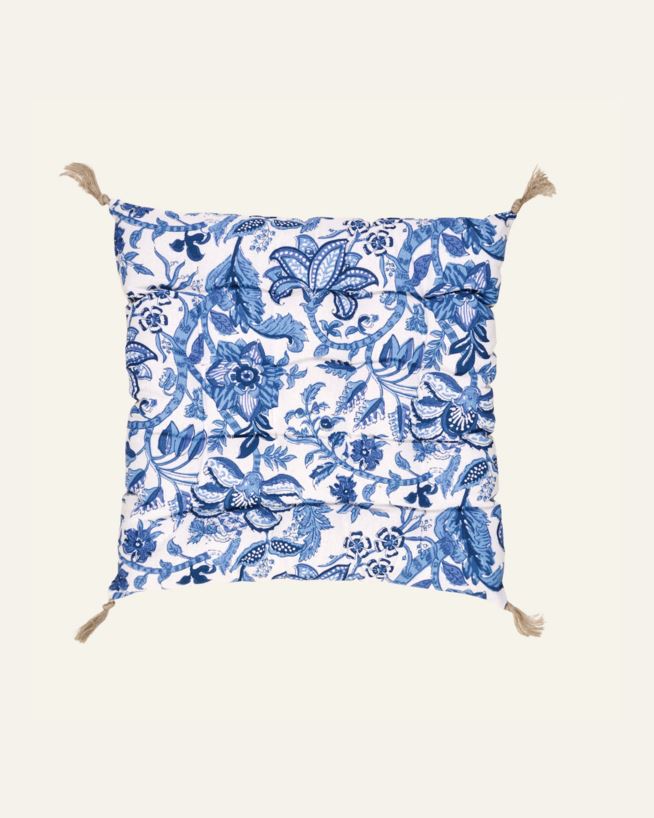 Puuvillase kattekangaga toolipadi, mis lisab istumismugavust ja dekoratiivset aktsenti. Tutid padja nurkades loovad mängulise ilme ning pehme polüestertäidis tagab mõnusa toe igapäevaseks kasutamiseks.